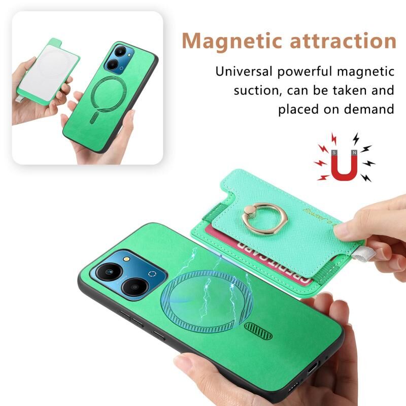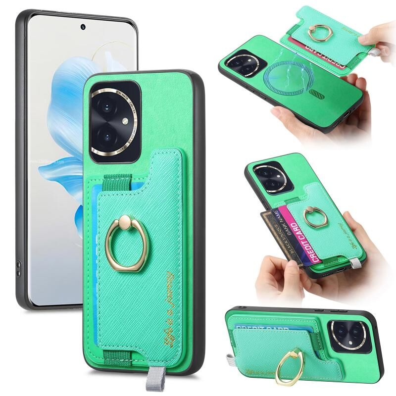 Θήκη τηλεφώνου Honor 100 Retro Magsafe Δερμάτινη με Δαχτυλίδι και Θήκη Καρτών (πράσινο)