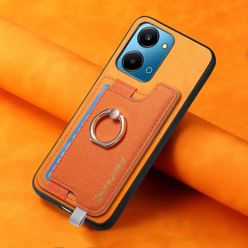 Θήκη τηλεφώνου Honor 100 Retro Magsafe Δερμάτινη με Δαχτυλίδι και Θήκη Καρτών (Κίτρινο)