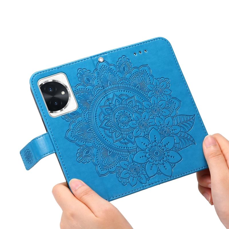 For Honor 100 Seven-petal Flowers Embossing Leather Phone Case(Blue)