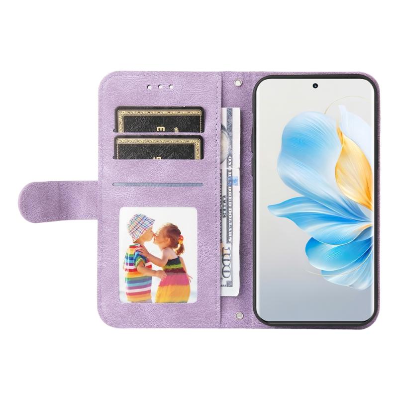 For Honor 100 Skin Feel Life Tree Metal Button Leather Phone Case(Purple)