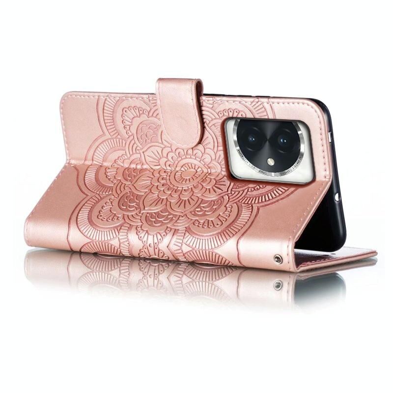 Για Honor 100 Sun Mandala ανάγλυφο μοτίβο τηλέφωνο δερμάτινη θήκη (Rose Gold)