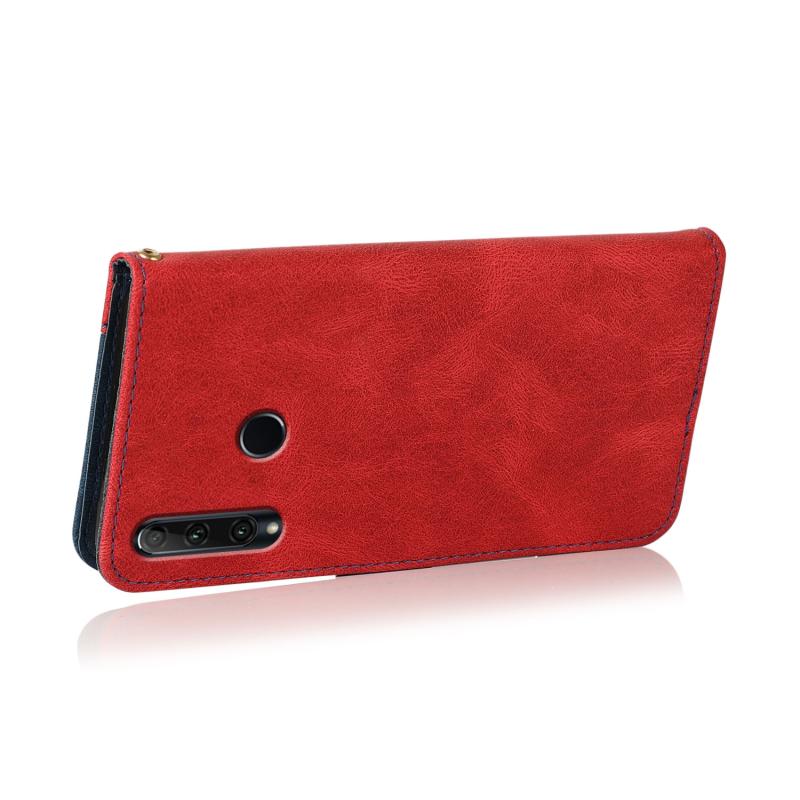 Θήκη τηλεφώνου από δέρμα με διπλή ραφή για Honor 10i / Honor 20 lite (Κόκκινο Μπλε)