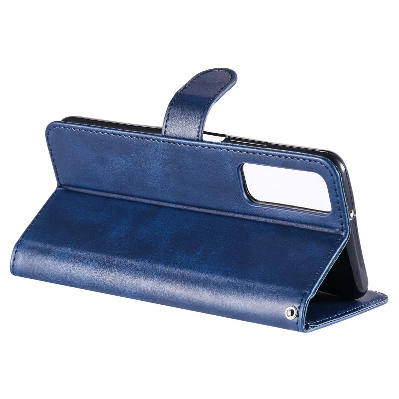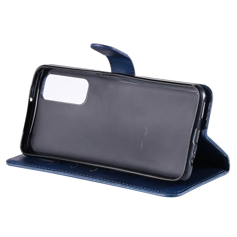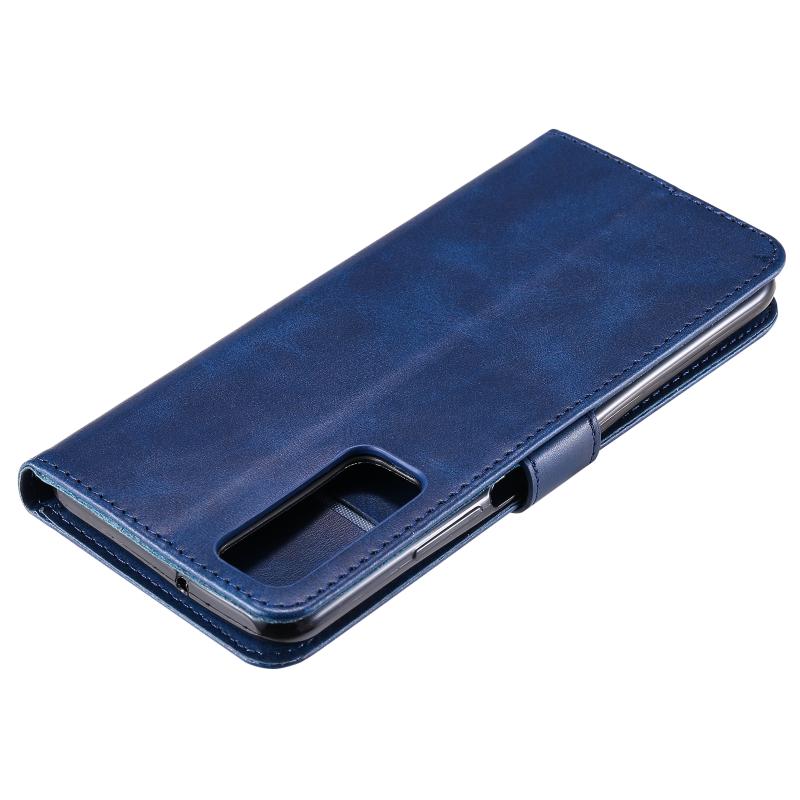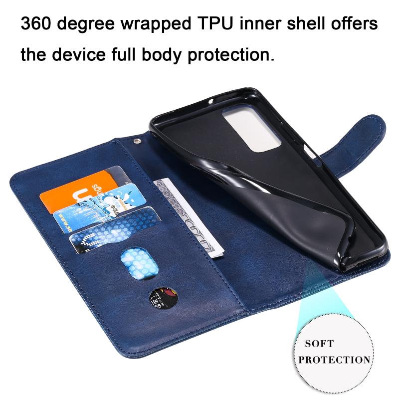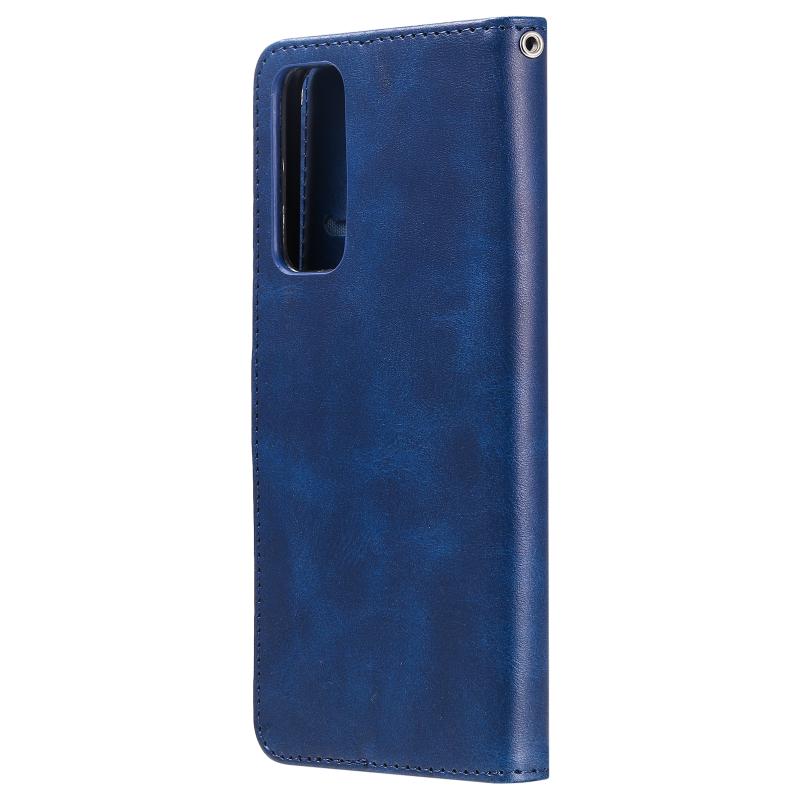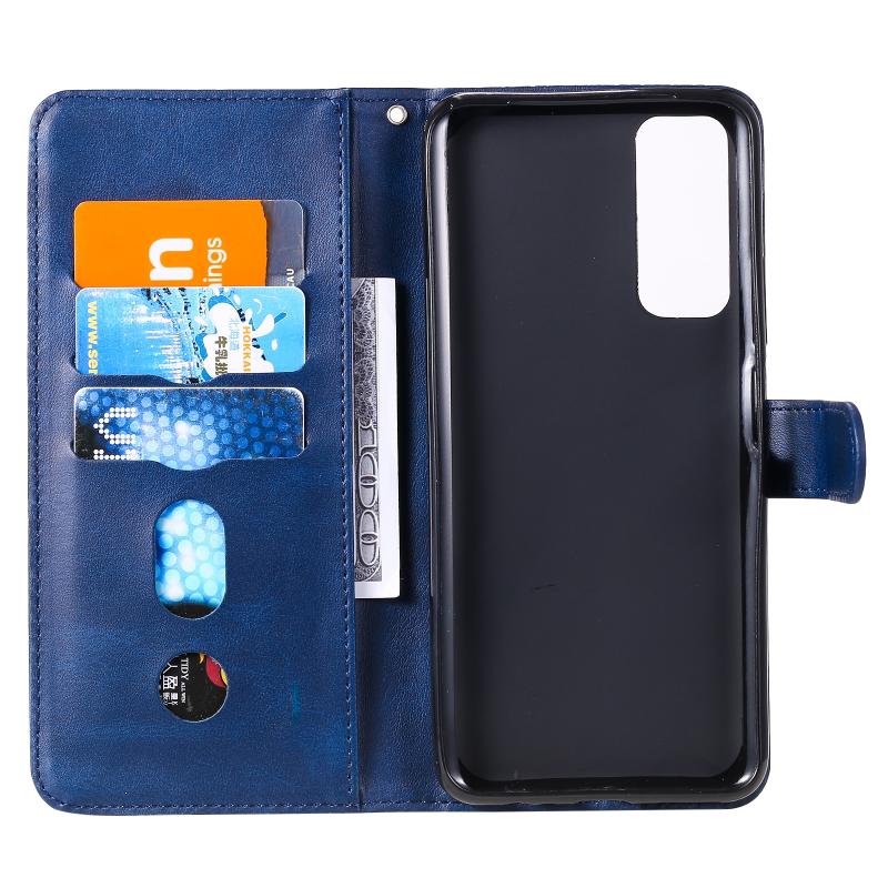 Θήκη δέρματος οριζόντιας αναδίπλωσης με λεπτή υφή μοσχαριού και φερμουάρ για Honor 10X Lite, με βάση στήριξης & υποδοχές καρτών & λειτουργία πορτοφολιού (Μπλε)