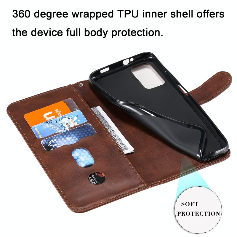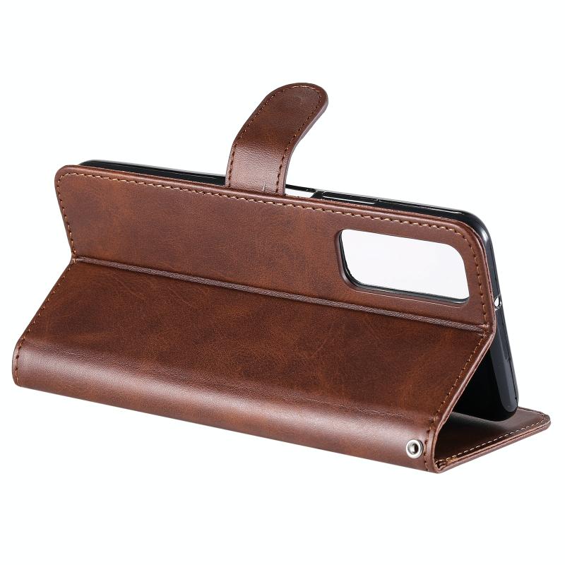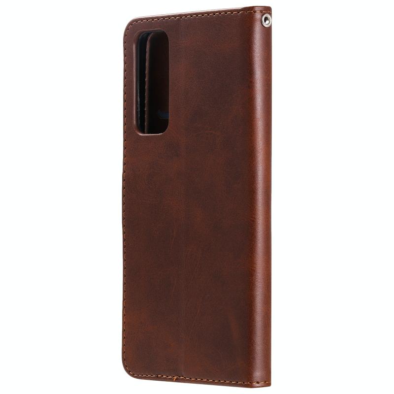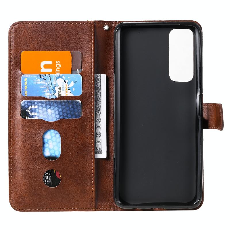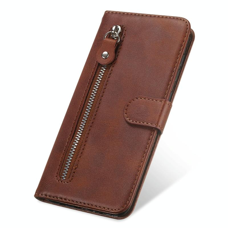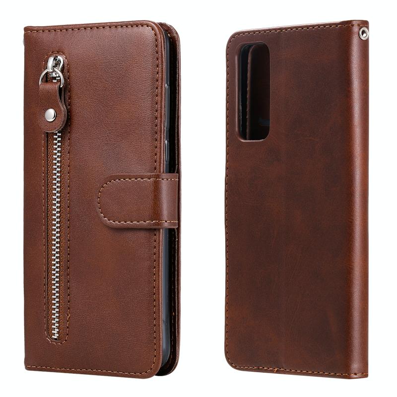 Θήκη δέρματος οριζόντιας αναδίπλωσης με λεπτή υφή μοσχαριού και φερμουάρ για Honor 10X Lite, με βάση στήριξης & υποδοχές καρτών & λειτουργία πορτοφολιού (Καφέ)