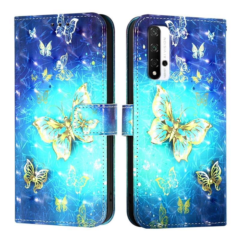Θήκη τηλεφώνου από δέρμα με οριζόντιο άνοιγμα και τρισδιάστατη ζωγραφική για Honor 20 / 20 Pro / 20S 4G (Χρυσή Πεταλούδα)