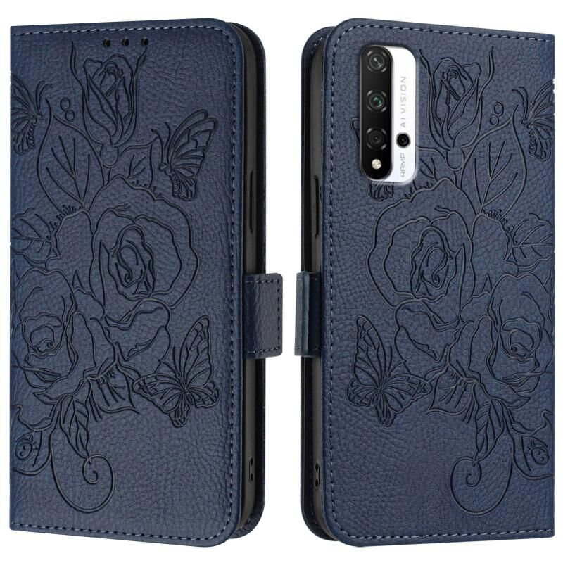 Θήκη τηλεφώνου από δέρμα με ανάγλυφο σχέδιο τριαντάφυλλου και προστασία RFID κατά της κλοπής για Honor 20 4G / 20 Pro 4G / 20S 4G (Πράσινο)