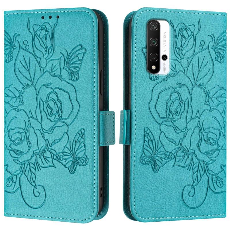 For Honor 20 4G / 20 Pro 4G / 20S 4G Embossed Rose RFID Anti-theft Leather Phone Case(Light Blue)