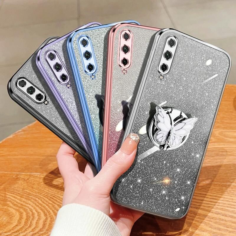 Θήκη κινητού τηλεφώνου TPU με σχέδιο πεταλούδας από γκλίτερ και διαβαθμισμένο χρώμα για Honor 20 Lite (Ροζ)