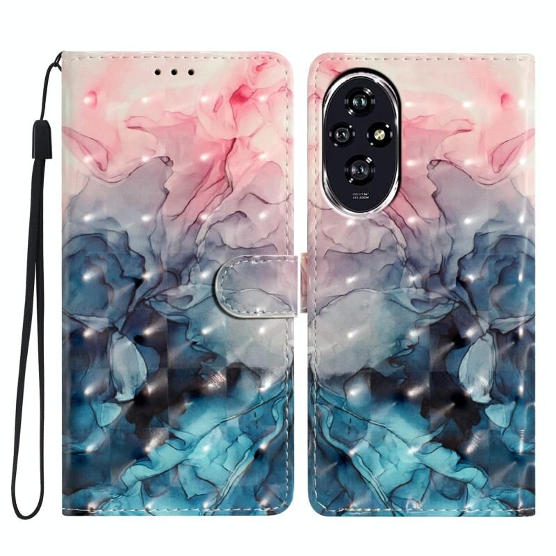 Θήκη τηλεφώνου από δέρμα με 3D σχέδιο για Honor 200 (3D Ροζ Μπλε Μάρμαρο)