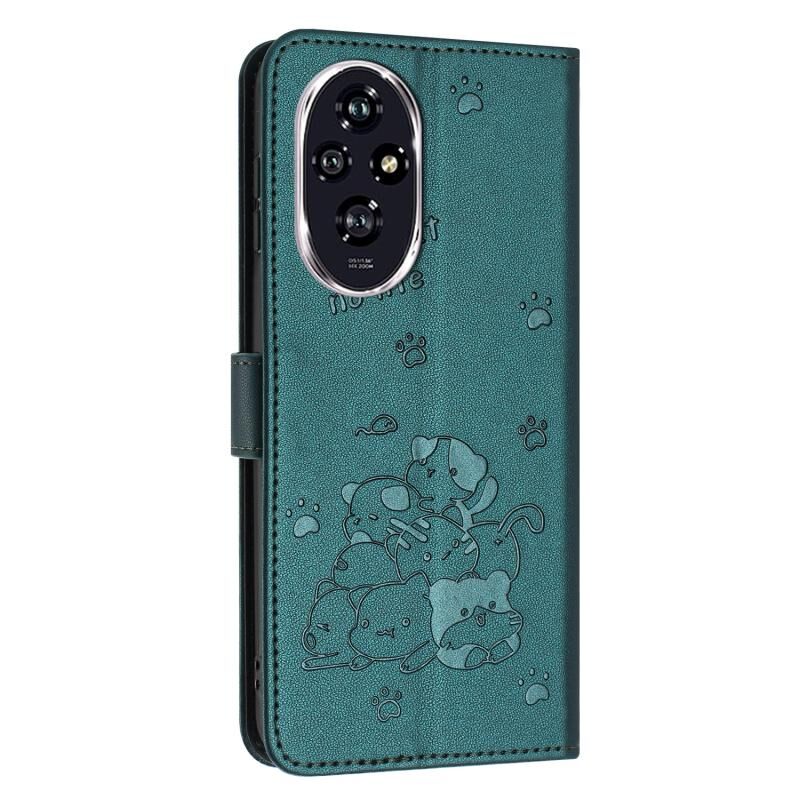 Θήκη τηλεφώνου δερμάτινη με ανάγλυφο γατάκι και λουρί για Honor 200 5G (Μωβ)