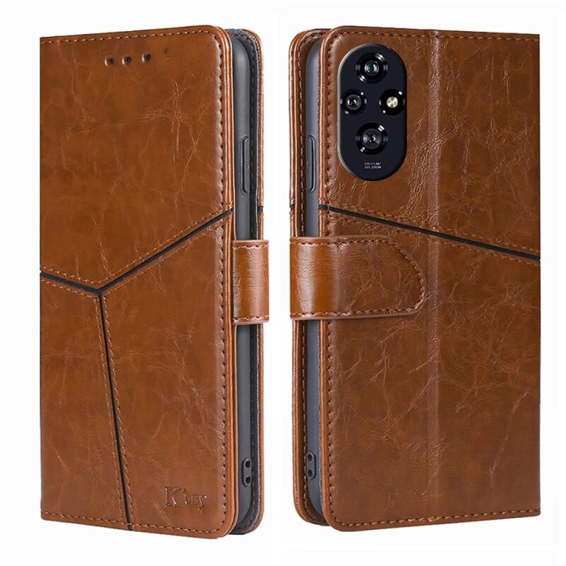 Για Honor 200 5G γεωμετρική ραφή δερμάτινη θήκη τηλεφώνου (ανοιχτό καφέ)