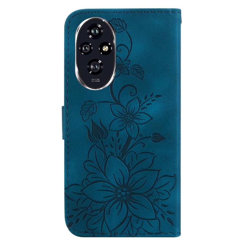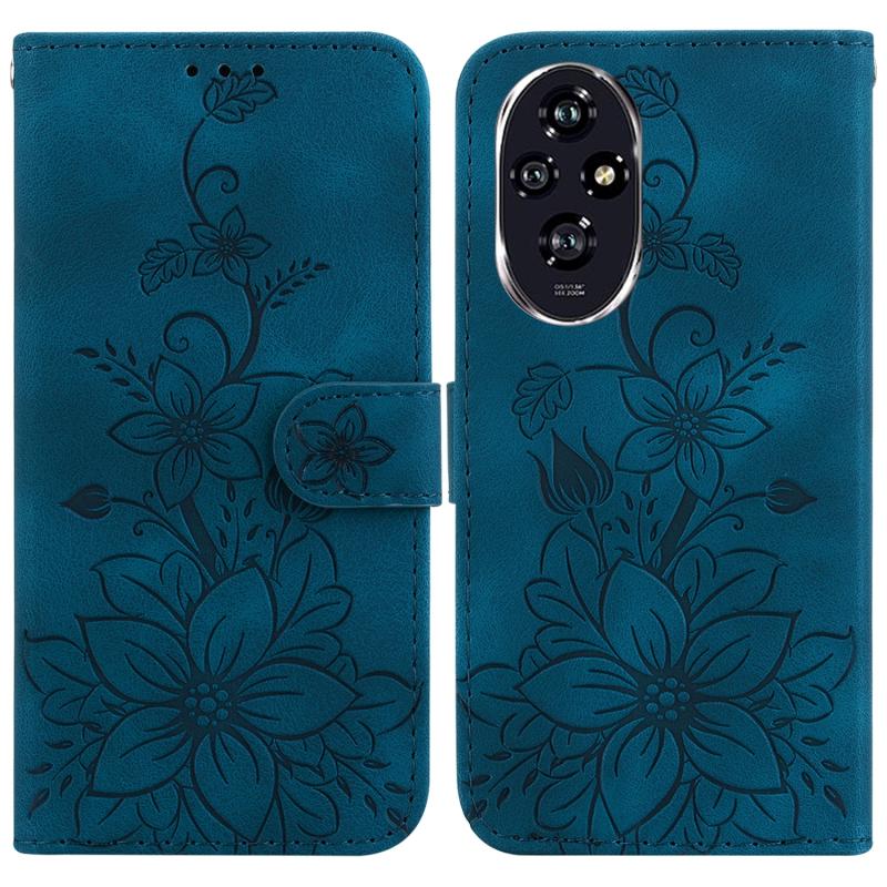 For Honor 200 5G Lily Embossed Leather Phone Case(Dark Blue)