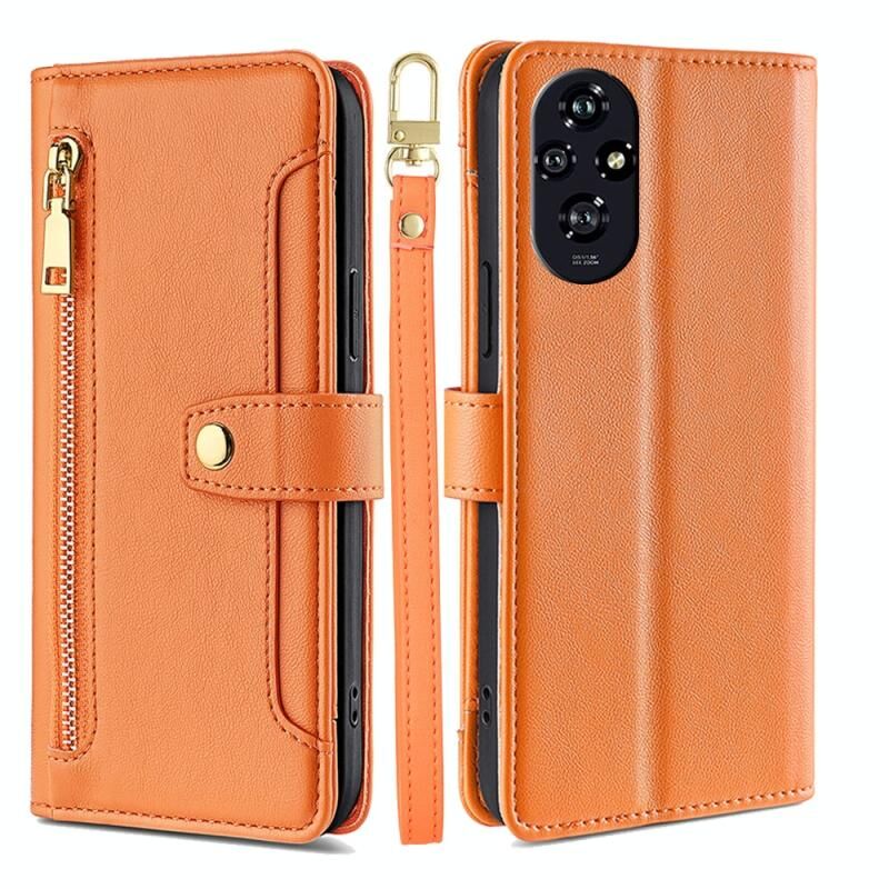 Για Honor 200 5G Πρόβατα Υφή Cross-body φερμουάρ πορτοφόλι δερμάτινη θήκη τηλεφώνου (Πορτοκαλί)