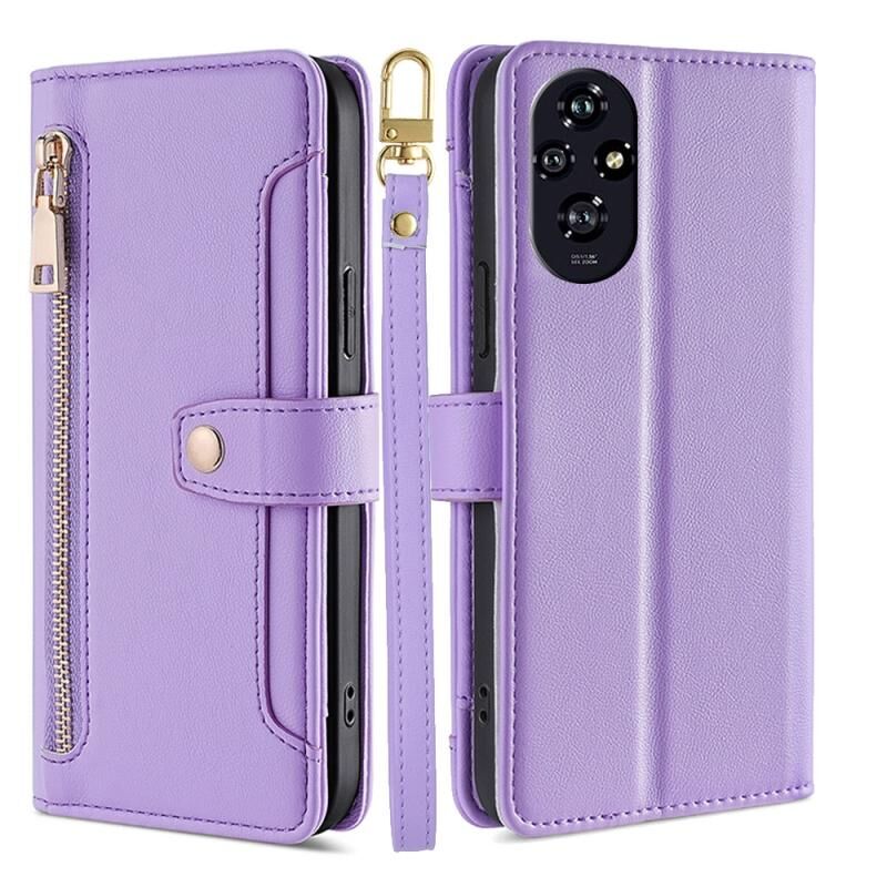 Για Honor 200 5G Πρόβατα Υφή Cross-body φερμουάρ πορτοφόλι δερμάτινη θήκη τηλεφώνου (Μωβ)
