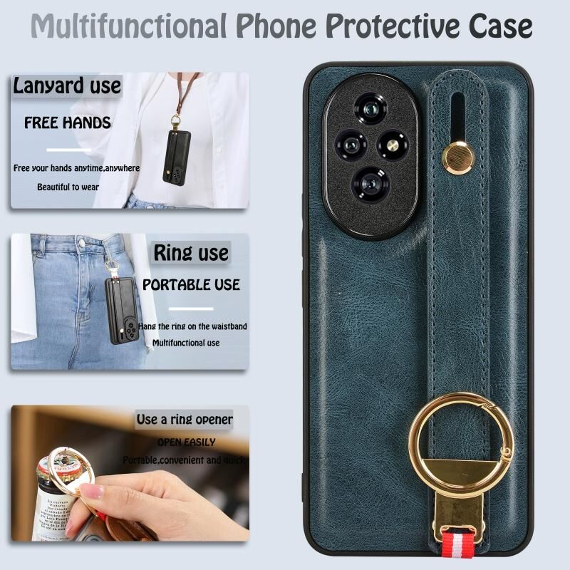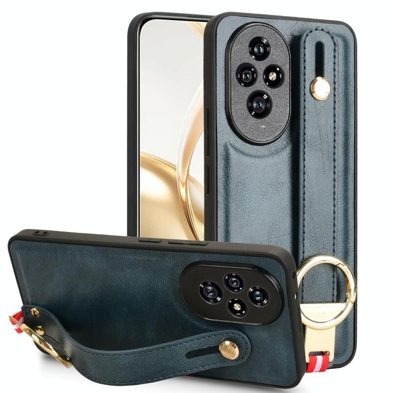 Για Honor 200 5G Wristband δέρμα πίσω υπόθεση τηλεφώνου (μπλε)