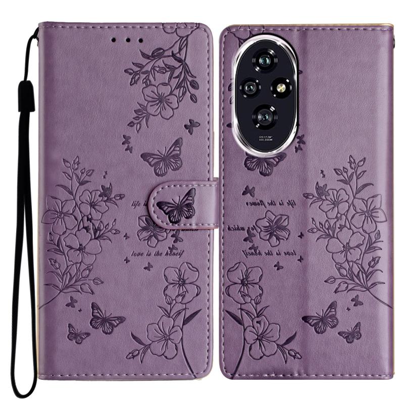 For Honor 200 Butterflies And Flowers Leather Phone Case(Purple)