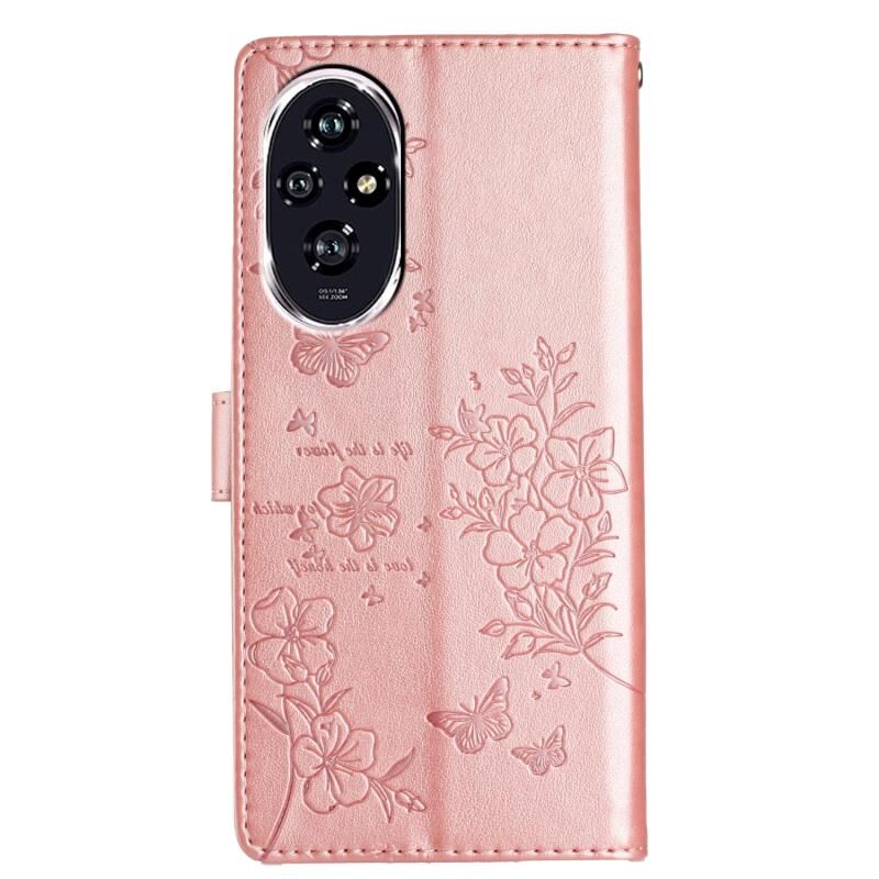 For Honor 200 Butterflies And Flowers Leather Phone Case(Rose Gold)