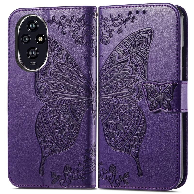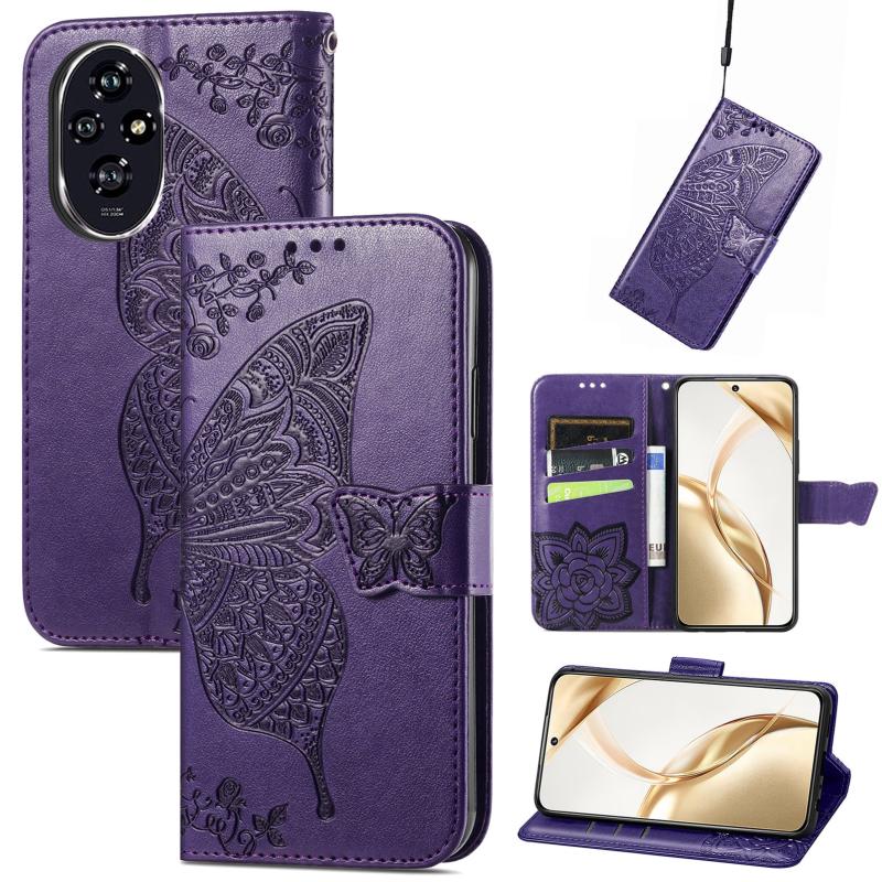 For Honor 200 Butterfly Love Flower Embossed Leather Phone Case(Purple)