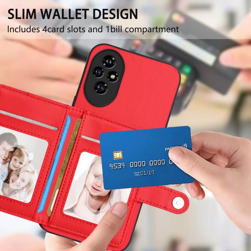 Θήκη κινητού τηλεφώνου για Honor 200 με κάρτες και προστασία RFID κατά της κλοπής (Κόκκινο)
