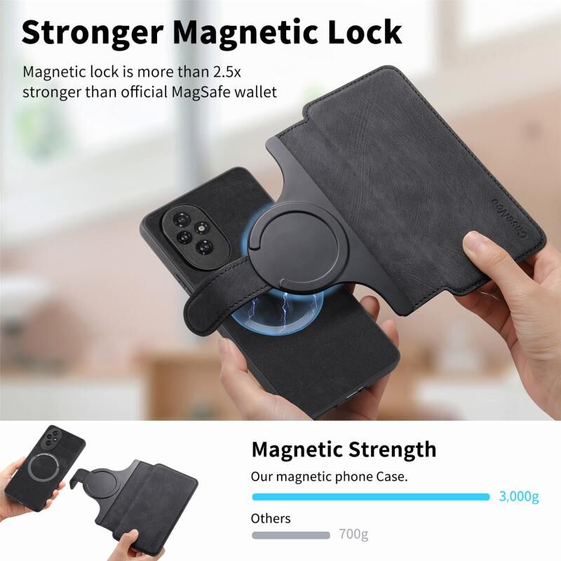 Θήκη για Honor 200 CaseNeo MagSafe RFID Αντικλεπτική Ρετρό Δερμάτινη Θήκη Τηλεφώνου (Μαύρο) (CaseNeo)