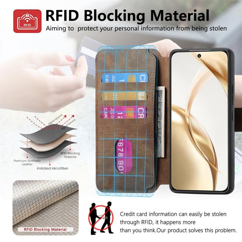 Θήκη για Honor 200 CaseNeo MagSafe RFID Αντικλεπτική Ρετρό Δερμάτινη Θήκη Τηλεφώνου (Μαύρο) (CaseNeo)