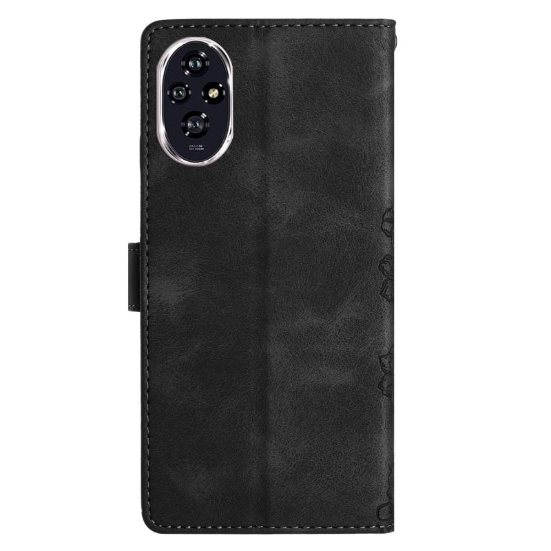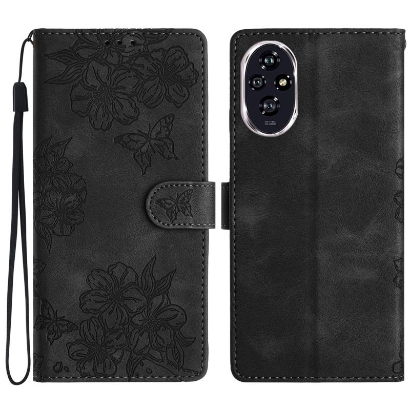 For Honor 200 Cherry Blossom Butterfly Skin Feel Embossed PU Phone Case(Black)