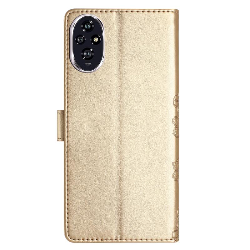 For Honor 200 Cherry Blossom Butterfly Skin Feel Embossed PU Phone Case(Gold)