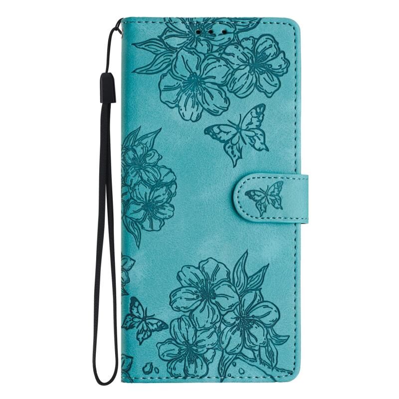 Θήκη τηλεφώνου Honor 200 με ανάγλυφο σχέδιο PU, Cherry Blossom Butterfly (πράσινο)