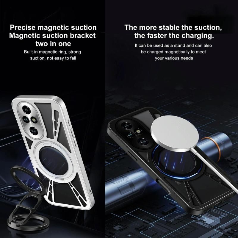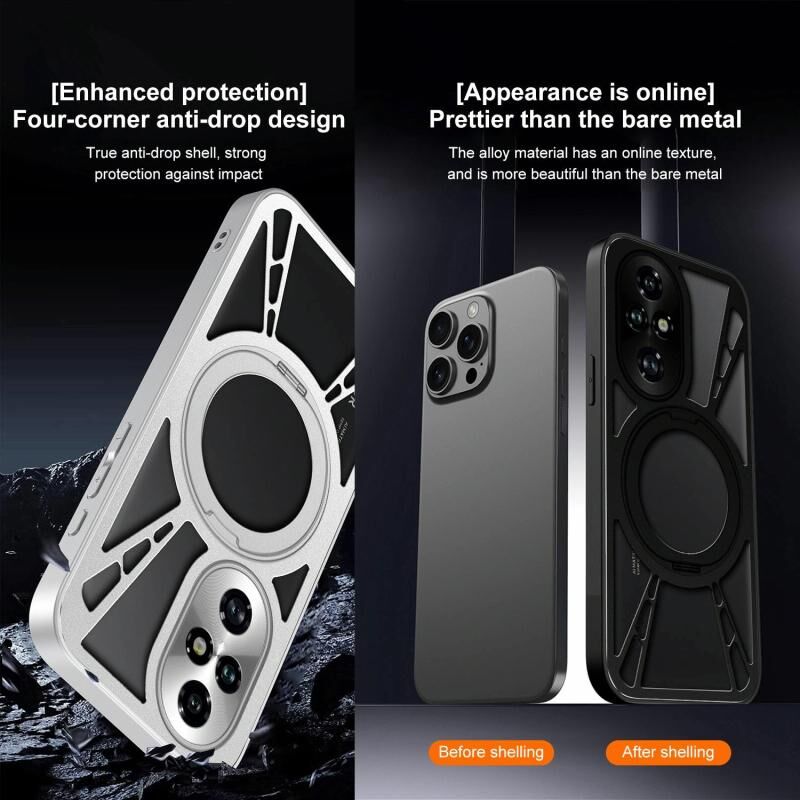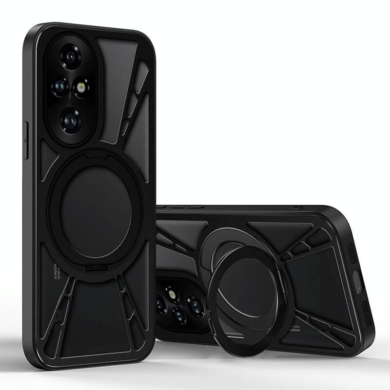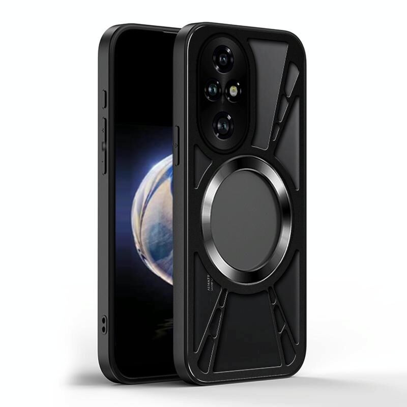 For Honor 200 Cooling Hollow Metal Holder MagSafe Phone Case(Black)