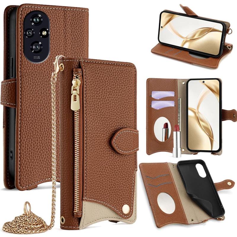 For Honor 200 Crossbody Chain Fishtail Litchi Leather Phone Case(Brown)