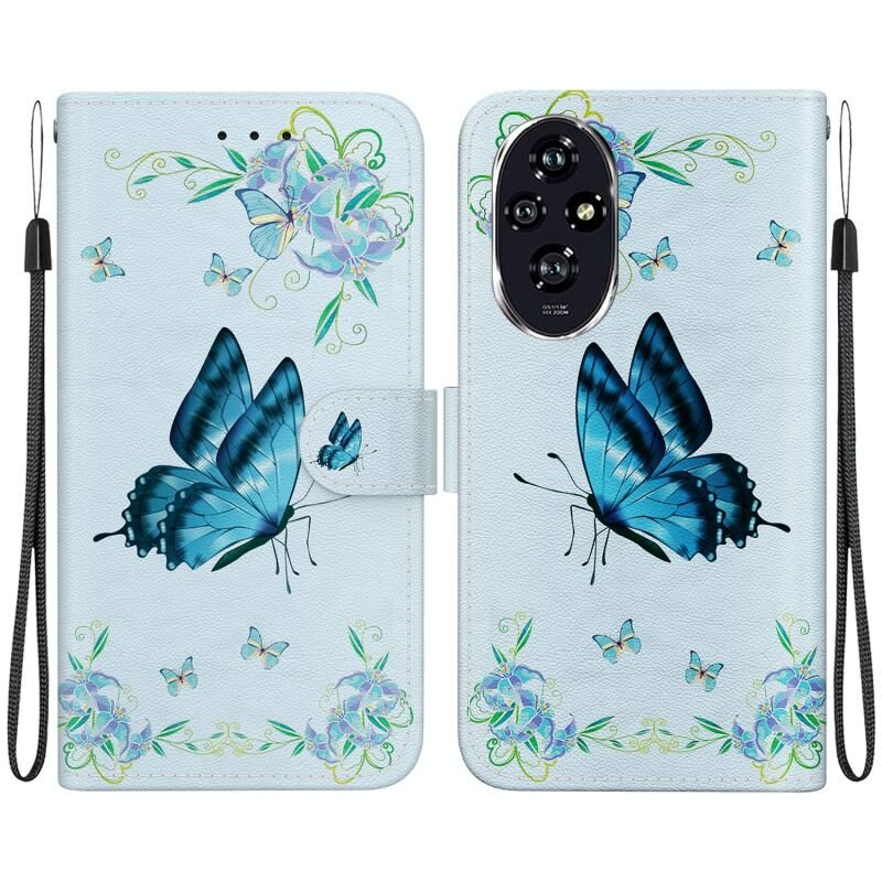 Θήκη τηλεφώνου από δέρμα με πολύχρωμη σχεδίαση κρυστάλλινης υφής για Honor 200 (Μωβ Παιώνια)