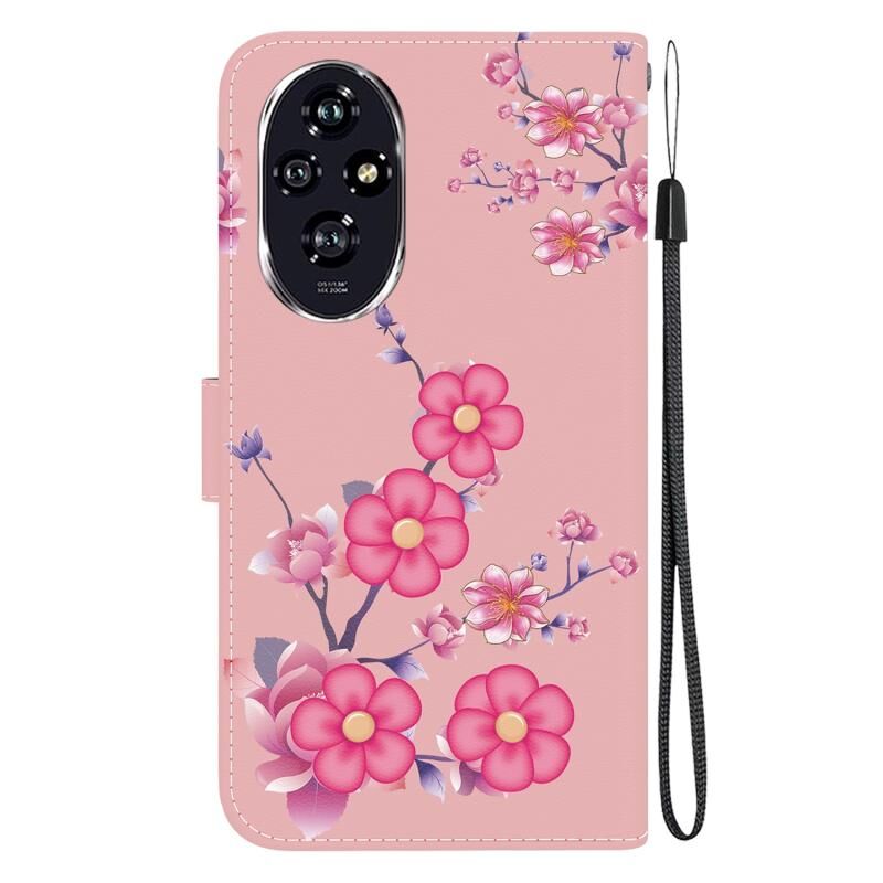Θήκη τηλεφώνου από δέρμα με πολύχρωμη σχεδίαση κρυστάλλινης υφής για Honor 200 (Άνθη κερασιάς)