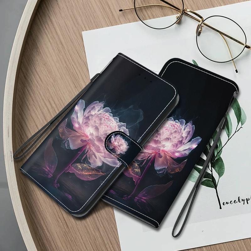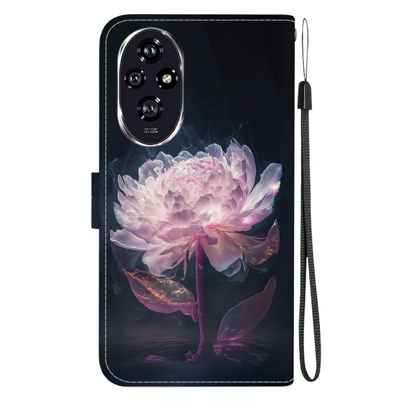 For Honor 200 Crystal Texture Colored Drawing Leather Phone Case(Purple Peony)