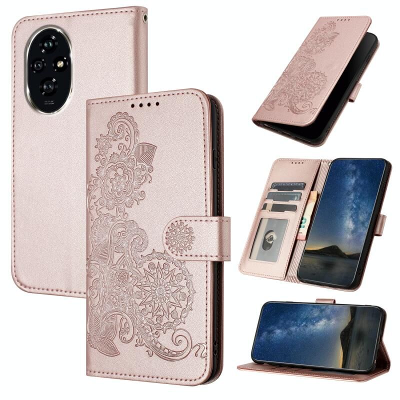 Για Honor 200 Datura λουλούδι ανάγλυφο Flip υπόθεση τηλεφώνου δέρμα (Rose Gold)