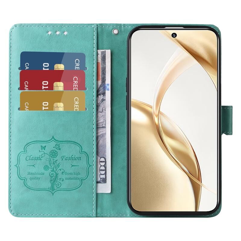 For Honor 200 Embossed Butterfly Flowers Leather Phone Case(Green)