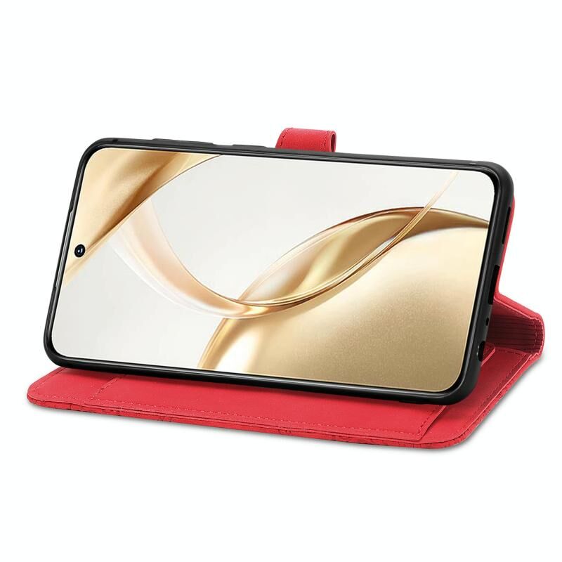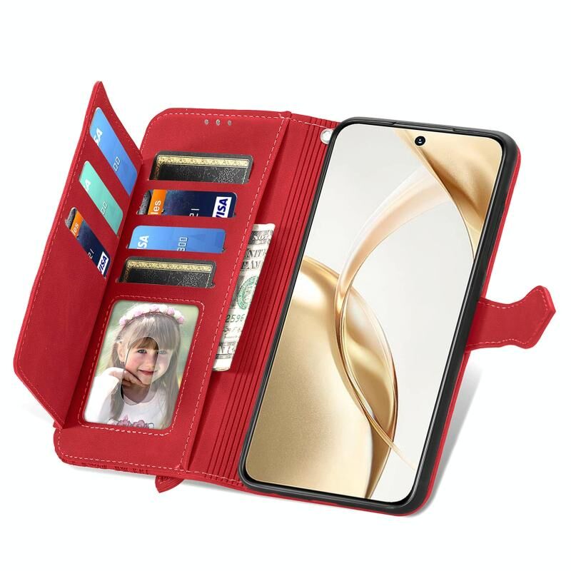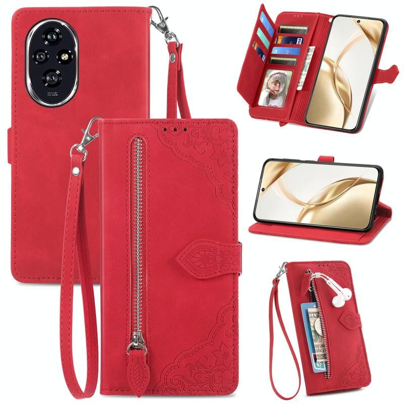 Για Honor 200 ανάγλυφο λουλούδι φερμουάρ δερμάτινη θήκη τηλεφώνου (κόκκινο)