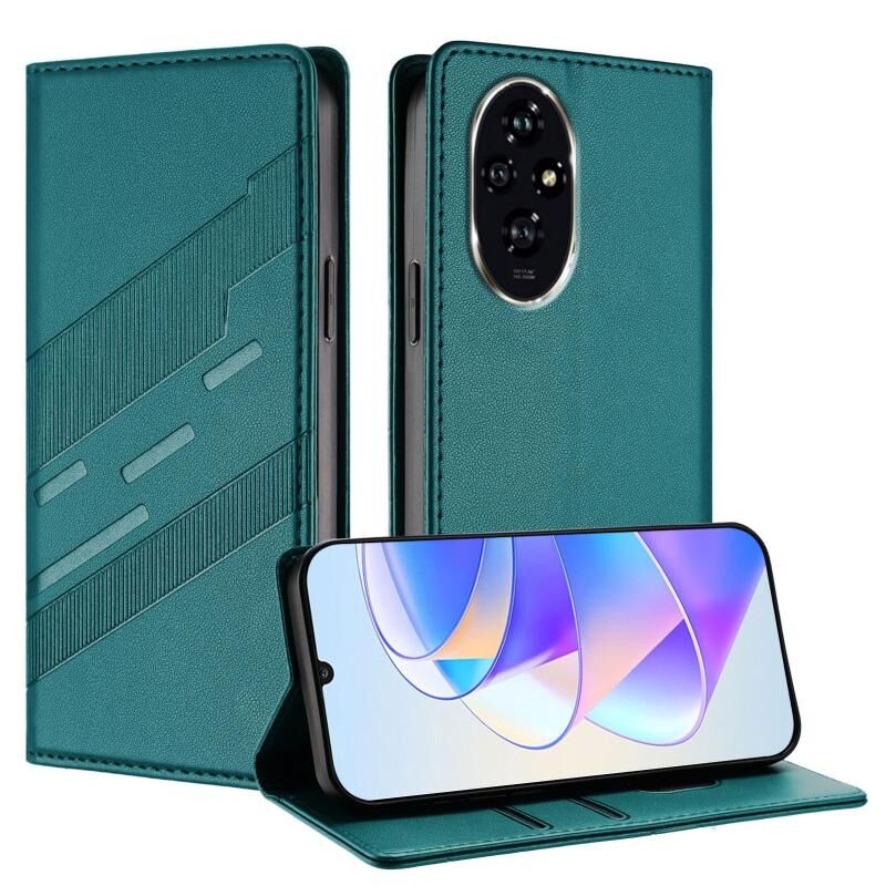 Θήκη τηλεφώνου από δέρμα retro, πολυλειτουργικό πορτοφόλι με ανάγλυφο σχέδιο για Honor 200 (Σκούρο πράσινο)