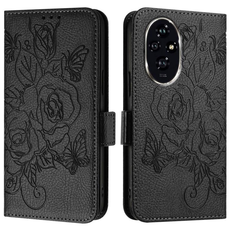 Θήκη τηλεφώνου δερμάτινη με ανάγλυφο σχέδιο τριαντάφυλλου και προστασία RFID κατά της κλοπής για Honor 200 (Πράσινη)