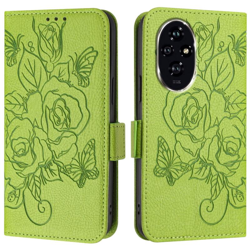 For Honor 200 Embossed Rose RFID Anti-theft Leather Phone Case(Green)