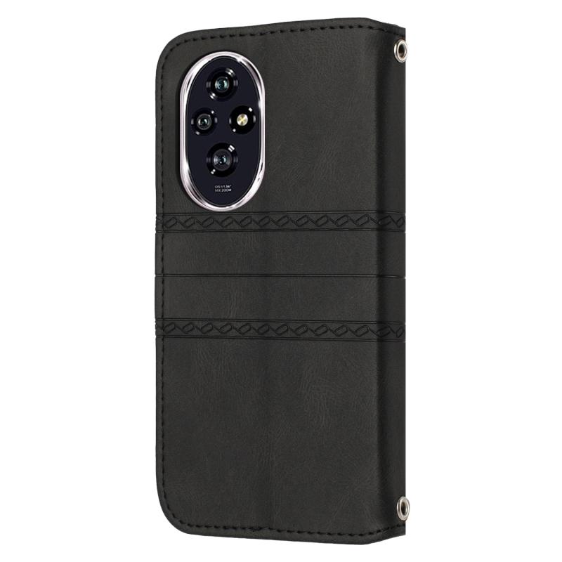For Honor 200 Embossed Stripes Skin Feel Leather Phone Case(Black)