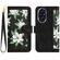 For Honor 200 Floral Pattern Leather Phone Case with Lanyard(Black)