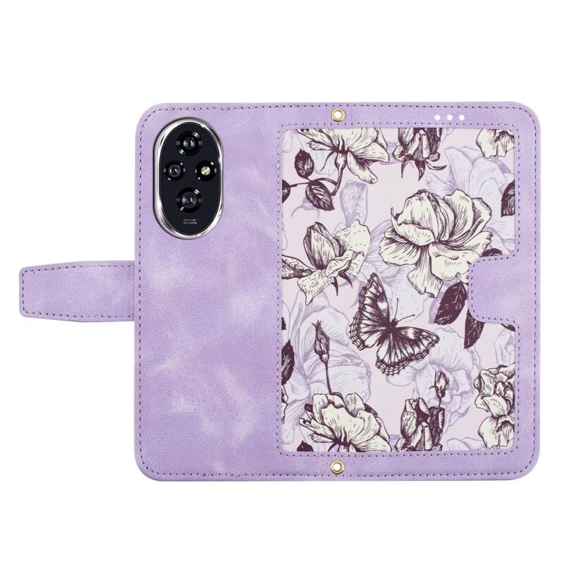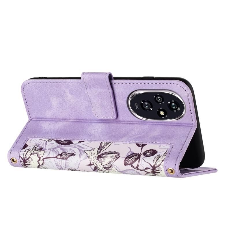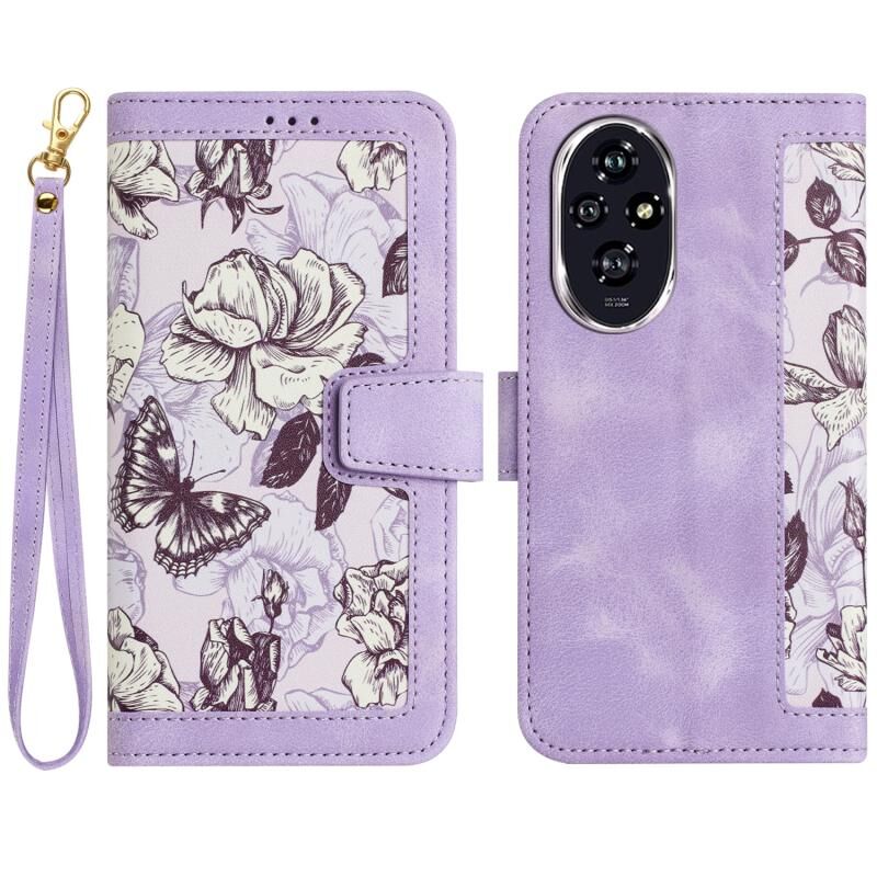Θήκη τηλεφώνου Honor 200 με λουλουδάτο σχέδιο από δέρμα με κορδόνι (ανοιχτό μωβ)