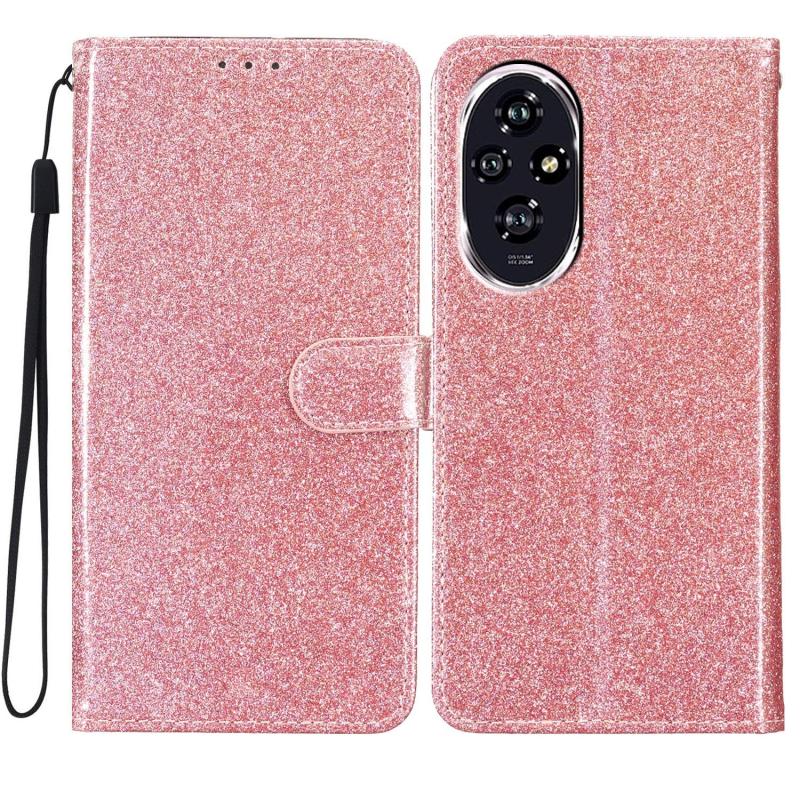 For Honor 200 Glitter Powder Flip Leather Phone Case(Rose Gold)