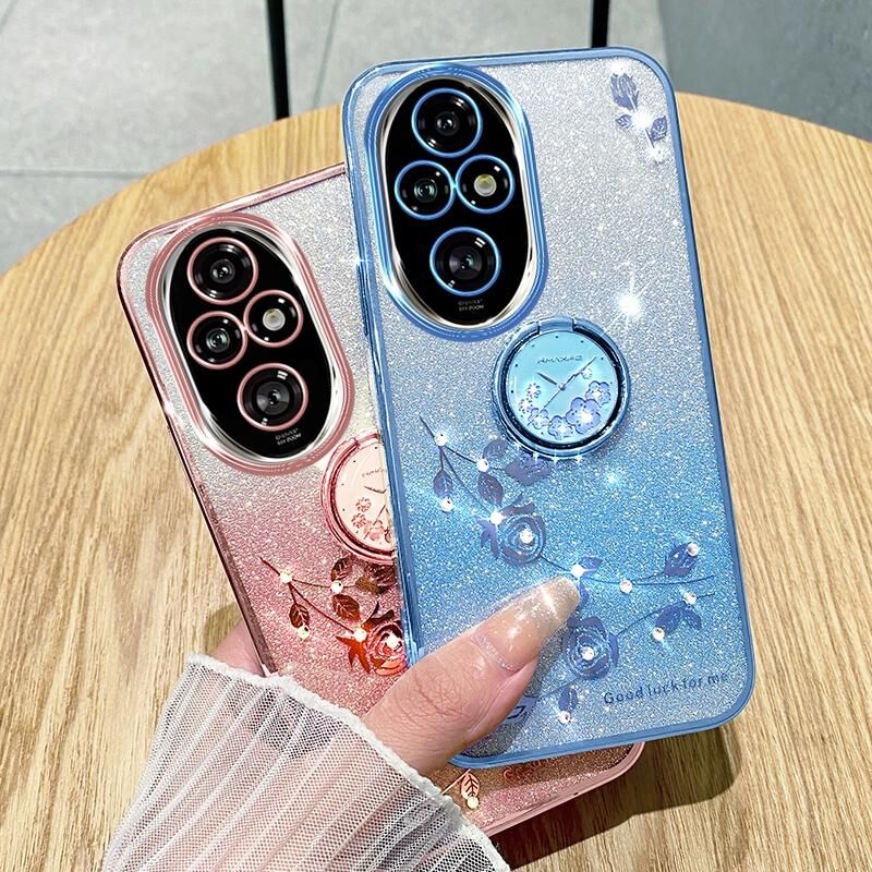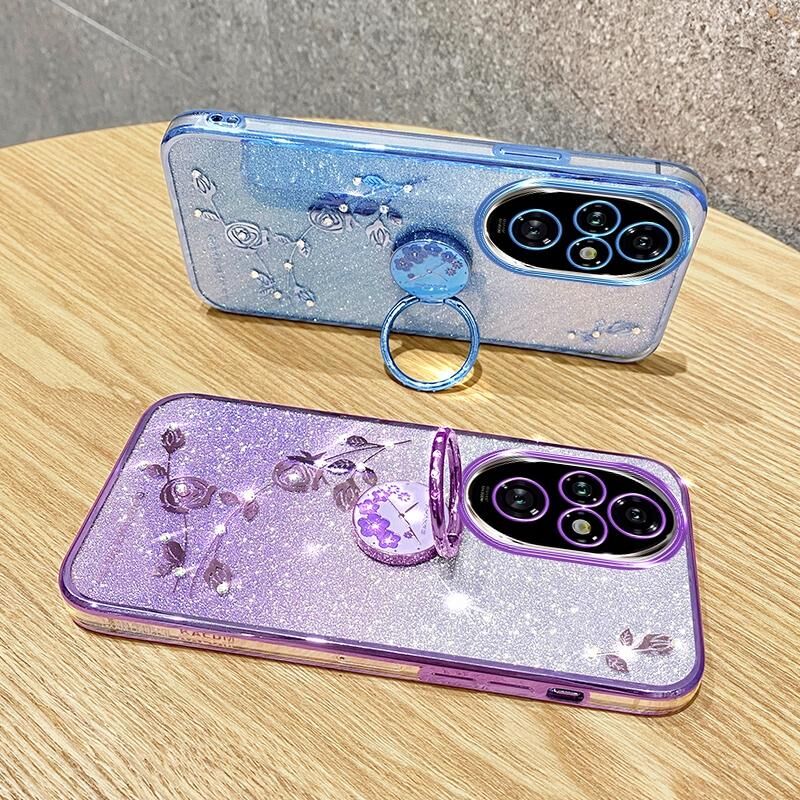 Θήκη κινητού τηλεφώνου For Honor 200 με λαμπερό σχέδιο διαβαθμίσεων, αθάνατο λουλούδι και πλήρη προστασία (Μωβ)