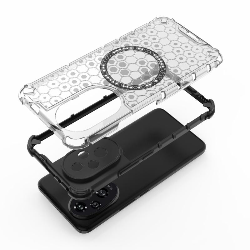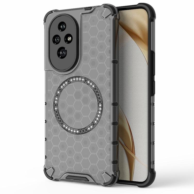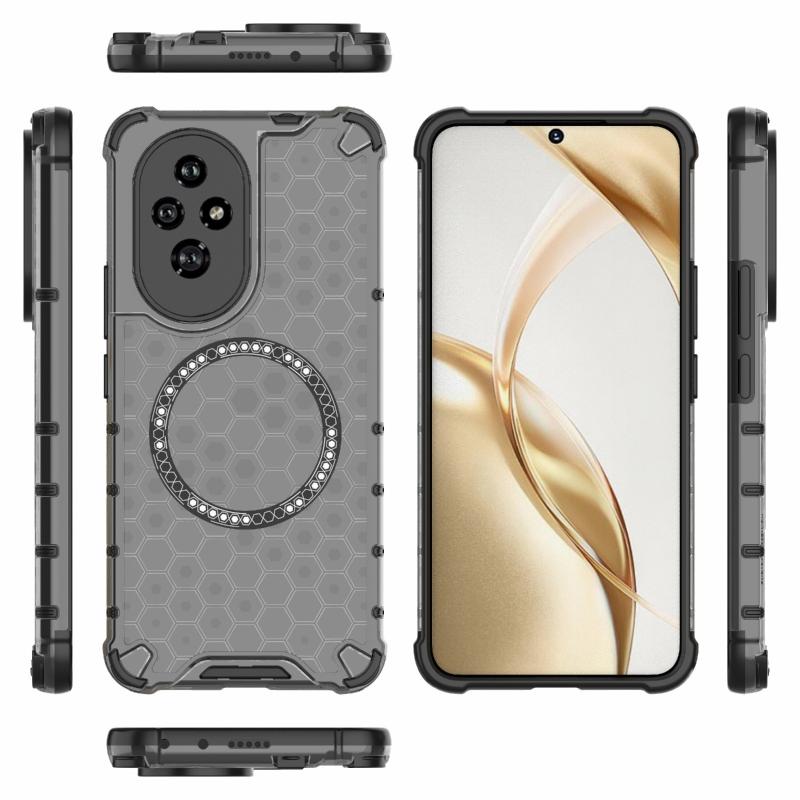 For Honor 200 Honeycomb Magnetic Ring Shockproof Phone Case(Black)