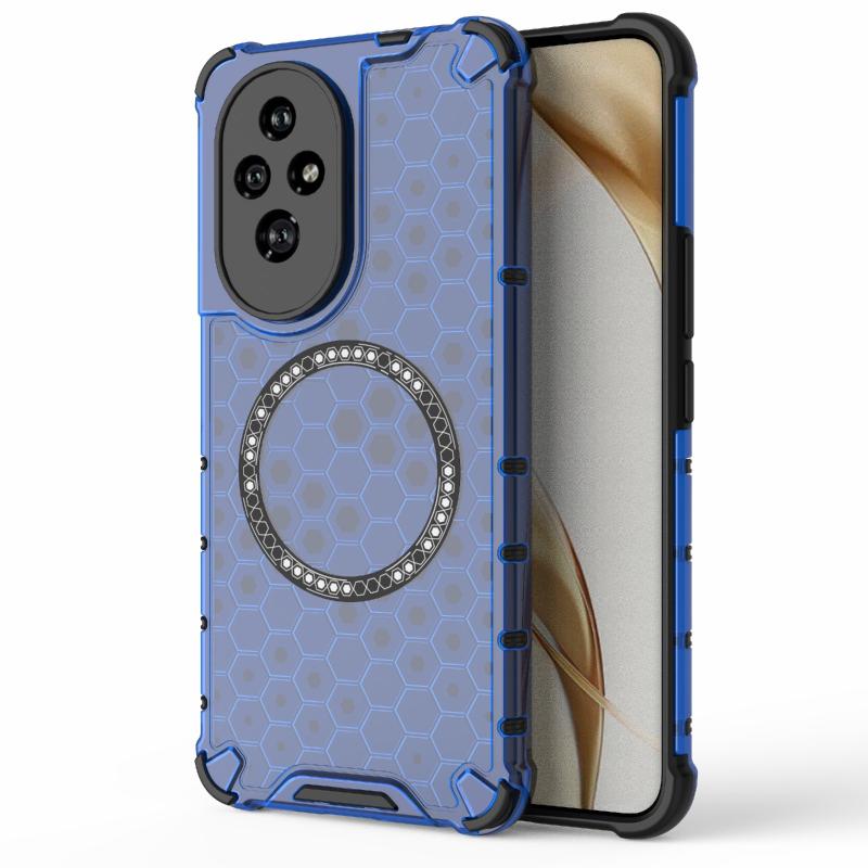 For Honor 200 Honeycomb Magnetic Ring Shockproof Phone Case(Blue)