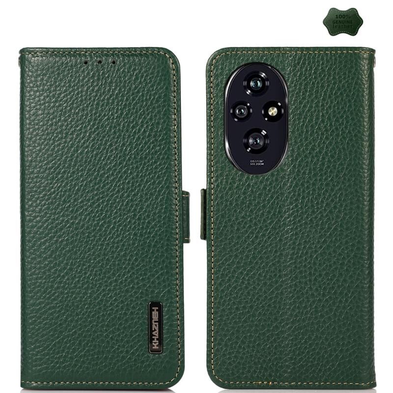 Θήκη τηλεφώνου Honor 200 KHAZNEH με μαγνητική πλευρά, γνήσιο δέρμα Litchi, RFID (Μαύρο)
