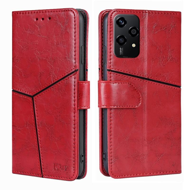 Για Honor 200 Lite 5G Παγκόσμια γεωμετρική ραφή δερμάτινη θήκη τηλεφώνου (κόκκινο)