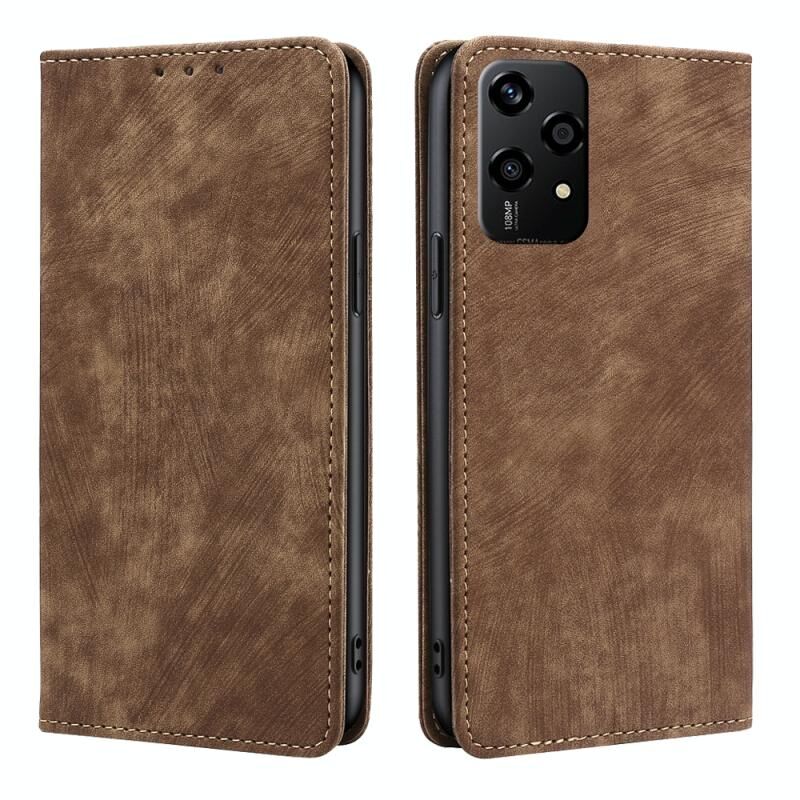 Για Honor 200 Lite 5G Παγκόσμια RFID Anti-theft Μαγνητική θήκη τηλεφώνου δερμάτινη βούρτσα (Καφέ)