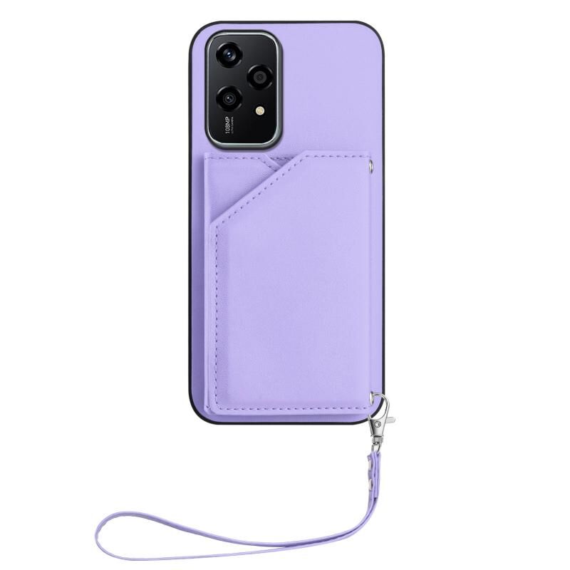Θήκη τηλεφώνου για Honor 200 Lite 5G με αίσθηση δέρματος, τέσσερις θήκες καρτών και λουρί καρπού (Ροζ)